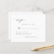 Modern minimalistisk elegant vit svart budget bröllopssvarsmall kort med ett chic trendy kalligrafi-manus. ++++++++++++ Lätt att anpassa med dina detaljer! Lämplig för moderna eleganta klassiska formella bröllop. ++++++++++ VÄNLIGEN LÄS DETTA INNAN KÖP! Detta är ett budgetvänligt bröllopskort som är tryckt på ett pappersark (varje ark har ett kort). ++++ För bästa förhållande pris-kvalitet är vårt råd att välja Semi-Gloss-pappertyp (den är tillräckligt tjock för att användas till brevpapper) ++++ Om du behöver kuvert, välj KUVERTERALTERNATIV. +++ Dubbelkontrollera all information och stavning av din text eftersom du kommer att få exakt vad du ser - ingen annan kommer att kontrollera någonting innan utskrift. ++++ Detta kort är designat för storlek 4,5" x 5,6". Om du väljer en annan storlek på kortet och texten hamnar utanför sidan,