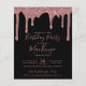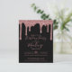 BUDGET Rosa Guld Glitter Gnistdroppar Födelsedagsinbjudan för valfritt år med falska glitterdroppar och chic svart bakgrund. Fortfarande vacker, men en mer delikat, mindre dyr pappersstil. Om du behöver hjälp eller matchande föremål, vänligen kontakta oss på cedarandstring@gmail.com.