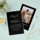 Budget Anpassa detta Svarta och Vita Enkla, minimalistiska och eleganta dubbelsidiga inbjudan med foto på baksidan med ditt meddelande och detaljer. Denna snygga inbjudan har modern och elegant stilren enkel handskriven typsnittsdesign för det kommande bröllopet.