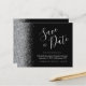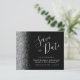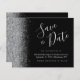Den här eleganten sparar datumkortet med silver faux glitter gräns. Anpassadet kombinerar handskript för silver grått, tryckplåt och kursivt typsnitt mot svart bakgrund. Den omvända sidan har en matchande design för svart och silver.