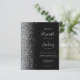 Den lämnat kant i eleganten är en modern bröllopsinbjudan från silver i glitter gräns. Med anpassadet kombineras handskrift av blek silver grått, tryckplåt och kursivt typsnitt mot svart bakgrund. Lägg till ytterligare information på baksidan tillsammans med en QR-kod som hjälper dina gäster att besöka webbplatsen för bröllop.