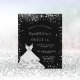 En modern, stilfull och glamourös inbjudan till Sweet 16, 16-årsfest. En chic svart bakgrund med falskt silverglitter och en klänning. Namnet skrivs med en modern handskriven stilsnack. Anpassa och lägg till dina festdetaljer.