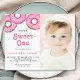 Bjud in familj och vänner till din första födelsedagsfest med denna söta 1:a födelsedagsbudget inbjudan. Den är dekorerad med akvarell munkar och säger "Hon är en söt en"