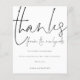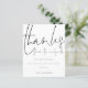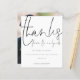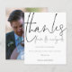 Ett budgetmässigt prist mindre än 4,5 x 5,6 tum alternativ. Finns i ett SEMI-GLOSS 110 lb-kort LAGRAR, vilket är standardalternativet (tjockare för inbjudningar), ELLER SATIN AVSLUTAR 80 lb PAPPER LAGRAR (perfekt för bilagor). Kuvert är ett extra som tillval och är något större än det storleka kortet. En modern typografisk design med ett set handskript för snyggt stil för tack från Newlyweds längst upp. På baksidan byt du ut bild mot din egen favorit från din dag som en keepy för dina gäster. Anpassa enkelt resten av texten med ditt budskap och namn.
