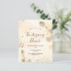 En inbjudan till en gyllene höstlig Thanksgiving-middag. En gyllene akvarellbakgrund dekorerad med gyllene eukalyptusblad och falskt guldglitter. Anpassa och lägg till din festdetaljer.