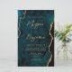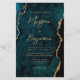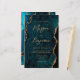 Denna eleganta bröllopsinbjudan har en bakgrundsbild av tealblå akvarellagat med falskt guldglitter. Den anpassningsbara texten kombinerar guldmodern handskrift, kopparplåt och kursiva teckensnitt. Baksidan har en matchande teal- och guldagatdesign.