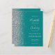 Budget Teal Blå Silver Glitter Bröllopsinbjudan