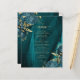 Den här menyn i elegant bröllop innehåller delblåa blommigtar som är uppställda med guld faux foil grey i två hörn, på en bakgrundsbild av färgagat teal vattenfärg. Anpassadet kombinerar serif och typsnitt för handskrift med guld-färgad. Den omvända sidan har en passande blommigt för teal och guld och en agate-design.