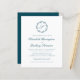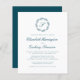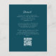 Den här inbjudan från elegant bröllop har en parallellblått skript i monogram som inledningsvis omges av en botanisk andedräkt. Namn visas i färgskript, medan resten av texten visas i klassiskt serif-teckensnitt. Den omvända sidan ger plats för bröllop-information på en helfärgad tealblått bakgrund, tillsammans med en QR-kodgäst som kan besöka webbplatsen och OSAN.
