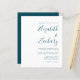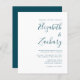 Den här enkla, moderna bröllopsinbjudan har tealblått text på vit bakgrund. Lägg till bildens och bildens namn i snyggtens handskriftsgrafi och detaljerna i sans serif-teckensnitt. Den omvända sidan ger plats för bröllop-information på en solid teal-bakgrund, tillsammans med en QR-kodgäst som kan söka igenom webbplatsen och OSAN. Obs! Kuvert inkluderas inte automatiskt i dessa budgetinbjudningar, så kom ihåg att välja alternativet "vita kuvert"!