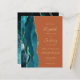 Den lämnat kant i eleganten i den moderna bröllopsinbjudan har en tårvattensagat gräns som trimmas med faux guld glitter. Anpassadet kombinerar handskrift, rityta och kursivt typsnitt med guld-färgad på en brinnande orange. Den omvända sidan har en passande teal och guld agate-design.