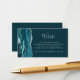 Den vänstra kanten på detta eleganta moderna bröllopswebbplatsfodral kännetecknas av en tealblå akvarellagat kant med falskt silverglitter. Titeln visas i handskriven stil, med anpassningsbar text nedan i silvergrå kopparplåtstil på en mörk teal bakgrund. Baksidan har en anpassad QR-kod som gästerna kan skanna för att besöka er webbplats och svara online.