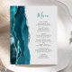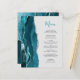 Den vänstra kanten på denna eleganta moderna bröllopsmeny har en tealblå akvarellagat kant med falskt silverglitter. Den anpassningsbara texten kombinerar teal handskriven stil och kolgrå kopparplåtfont på en blekgrå bakgrund. Baksidan har en matchande teal och silver agat design.