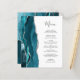Den moderna bröllop-menyn på den lämnat kant i eleganten har en färgad vattenfärgad tårblåfärgad gräns som trimmas med faux silver glitter. I anpassadet kombineras handskriftsskript för kol-grått och typsnitt på vit bakgrund. Den omvända sidan har en passande teal och silver agate-design.
