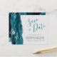 Detta eleganta budget sparar datuminbjudan har en tealblå akvatint agatgräns med falskt silverglitter. Den anpassningsbara texten kombinerar tealblå handskrivna skript med kolgrå kopparplåt och kursiv stil på en blekgrå bakgrund. Baksidan har en matchande tealblå och silver agatdesign.