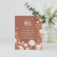Rustic fall 40-dagars festinbjudan. Ljusvita blommor dyker upp mot djup terracotta, brun bakgrund. Djupa vilda blommor av orange, blommiga blommor av rosa och djupa löv av grönt skapar en söt visning av masterblommor. Anteckningsdetaljer läggs till i vittext och trendig.