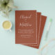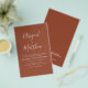 Anpassa Boho Terracotta Burnt Orange Enkel och Elegant Dubbla Sied-inbjudan med ditt meddelande och information. Den här inbjudan till chic innehåller en enkel handskriven manustypografi för snyggt och elegant för att det speciella Bröllopen ska kunna vara firande.