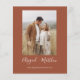 Budgetera Anpassa den här Dubblan Boho Terracotta Burnt Orange Enkel och Elegant Sida med foto på bakre inbjudan med ditt meddelande och information. Den här inbjudan till chic innehåller en enkel handskriven manustypografi för snyggt och elegant för att det speciella Bröllopen ska kunna vara firande.