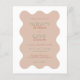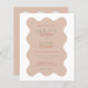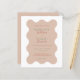 Den vackra bröllopsinbjudan är inramad av en känslig vågslinga gräns. Den har en lugn palett med lugnande terracotta-nyanser kompletterade med mjuka gröntar och jorda toner. Den lekfulla men sofistikerade typsnitt-dansen över sidan, blandningen av stollig med elegans, och det markerade ord som markerats i djup grönt, lägger till ett vackert popup på färg. Det är mer än bara en inbjudan, det är en inledning till ett firande fyllt av charm och glädje, perfekt lämpat för par som vill ha en blandning av roligt och sofistikering i en design som mjukt talar om natur och kärlek.