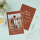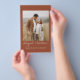 Budgetera Anpassa Boho Terra Cotta Photo Simple och Elegant Dubbla Sided Spara datuminbjudan med ditt meddelande och information. Den här inbjudan till chic innehåller handskriven manustypografi för snyggt och elegant för att det speciella Bröllop ska kunna vara firande.