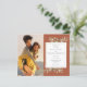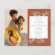 Med känsliga vattenfärgade gröna blad och en guldram på en terrakotta-bakgrund kan denna trendiga botaniska budgetbröllopsinbjudan anpassas med era speciella foton och detaljer från den stora dagen. Designad av Thisisnotme©