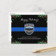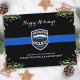 Skicka God jul hälsning till vänner, företag, medarbetare i tillsatta lagar och ert samhälle med detta unika Thin Blue Line Polis-julkort - Modern svart och blå med grå löv och bär. Anpassa med polisavdelningens logotyp, meddelande och avdelning. Budgetkorten god jul måste skickas som vykort med för stor storlek, så de kan åläggas en vanlig portoavgift men behöver inte ett kuvert eller en returadressetikett. COPYRIGHT © 2020 Judy Burrows, Black Hund Art - Med alla Höger reserverade. Budgeterat vykort för Thin Blue Line Polisavdelning Julens Helgdag