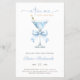 A trendy baby boy shower theme in dusty blue, featuring a watercolor martini glass and a soft coquette blue bow. Subtle blue stripes on the back complete the look, creating an elegant, modern, and timeless cocktail-inspired design.