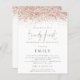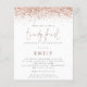 OBS! Det finns två pappersalternativ att välja mellan för denna storlek (4,5 x 5,6 tum) i Budget-sortimentet. För denna produkt rekommenderar jag starkt den halvblanka ytan som är ett 110 gsm kartongpapper, liknande i tjocklek som ett vykort. Den satinerade ytan är ett mycket tunnare papper, 80 gsm. Standardvalet är halvblank yta. Trendig Rosa Glitter Tjej 21-årsfest. En kant av roséguldglitter sitter högst upp på varje sida, och "Twenty first" är i ett handstilsmanus. Anpassa enkelt texten med dina egna detaljer.