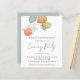 Trendig Blad Bröllops Kvälls Fest Inbjudan. Ett budgetpris MINDRE 4,5” x 5,6” alternativ. Finns i en HALVMATT 110 g KORTKVALITET som är standardalternativet (rekommenderas för inbjudningar), ELLER en SATENGENERAD 80 g TUNNARE PAPPERSKVALITET (idealisk för inklusioner). Kuvert är ett tillval och är något större än kortets storlek. En handskriven stil för Kvälls Fest och resten av texten kan du enkelt anpassa. ARtsy akvarellblad i höstskuggor av bränt orange, gult och pudrat blått flödar från övre vänstra hörnet.