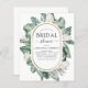 Budgetera tropiska Magnolia Flowers med Blommigt Greenery Handflatan och Faux Gold Foil Geometric Gräns Vår eller Summer Bröllop Inbjudningskort för möhippa - innehåller vackra och elegant manustypografi med moderna tropiska botaniska blommor och grönenergi för speciella Bride att vara firande.