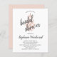 En faux ro-panasstencil är bakgrunden till ord "möhippa" i handskriptet elegant mörk grått. Namn i den brud som ska visas i matchande skript, med resten av texten i sans serif-teckensnitt. Anpassa med den egna ordalydelsen. Det motsatta är en matchande skugga av ro guld.