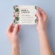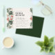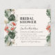 Denna budget tropiska bröllopsinbjudan med palm och bröllopsdusch har tropiska rosa blommor, palm och monstera blad, gyllene stänk. Baksidan av denna inbjudan är grön. Personifiera den och njut av den.
