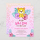 En söt BUDGET-inbjudan till babyduschning med ljusa färger, tropiska monstera löv och hibiscus blommor, ett vidsträckt baby leopard teckning, och regnbågsdjur i mönster. Inbjudan är anpassade och kan vara personlig! Det här är en underbar inbjudan till en djungeltematisk babydusch för en liten flicka!