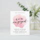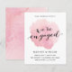Vattenfärg-förlovningsfestinbjudan Spotlight har en mjuk, målad rosa vattenfärgstvätt i mitten med kontrasterande modern svart kalligrafi på en elegant vit bakgrund.