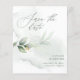 budget Eterials vattenfärgsblad och metallisk guld-effekt bröllop spara datum inbjudan. Med vackra vattenfärgsdetaljer. Den här moderna bröllopsinbjudan kommer säkert att sätta stil för din stora dag.