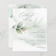 Budget Etherial water color foliage and metallic guld effect bröllop med information om omvänt. Med vackra vattenfärgsdetaljer. Den här moderna bröllopsinbjudan kommer säkert att sätta stil för din stora dag.