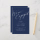 Enkel minimalistisk chic whimsical kalligrafi mörkblå vi är förlovade manus budget prisvärd förlovningsfest inbjudan.