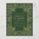 Denna inbjudan från elegant bröllop innehåller en ornitad vintage guld ram i en nödsituation med grönt som förebild för ett antikt bok-täcke. Anpassa guld-färgaden med namn och bröllop. Utformningen av ram upprepas på kortets baksida.