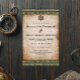 Vår budgetvänliga "Vintage Steampunk Bröllopapper", som är utformad med omsorg och uppmärksamhet på detaljer, har ett charmerande mönster av dold grönt, Victorian tapet, försedd med metallknappar i guld för detta industriella (men ändå dekorativa) utseende. En enda frakts hjul står på framsidan, och på baksidan av inbjudan finns en stor metallindustriplatta med järn lackor runt omkring den med ett par guld bröllop ringar i mitten. Ta flyget på ert stora äventyr och ta steget till ett minnesvärt firande med dessa unika meddelanden från bröllop, där vintage charm möter det vismala äventyr.