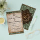 Vår budgetvänliga "Vintage Steampunk Bröllopapper", som är utformad med omsorg och uppmärksamhet på detaljer, har ett charmerande mönster av dold grönt, Victorian tapet, försedd med metallknappar i guld för detta industriella (men ändå dekorativa) utseende. En enda frakts hjul står på framsidan, och på baksidan av inbjudan finns en stor metallindustriplatta med järn lackor runt omkring den med ett par guld bröllop ringar i mitten. Ta flyget på ert stora äventyr och ta steget till ett minnesvärt firande med dessa unika meddelanden från bröllop, där vintage charm möter det vismala äventyr.