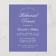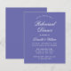 En enkel inbjudan till övningsmiddag med en modern färg, en violett nyans som är årets färg 2022. Den har bara vit text på violett bakgrund. Orden "Rehearsal Dinner" och namnet är skrivna med ett elegant kalligrafiskt manus.