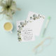Budgeten Eucalyptus Greenery Succulent Botanical Watercolor Vår bröllop Virtuell Inbjudningskort för möhippa på vit bakgrund - innehåller vacker och elegant manustypografi med modernt botaniskt löv och grön för att den speciella Briden ska vara firande.