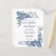 Liksom en lantlig bris, denna romantiska akvarell vildblomma blommiga design kommer att inbjuda gäster till din bröllopsfest med blommor, botanik och fjärilar, i mjuka klassiska blå toner på en krispig vit bakgrund. Kortets baksida är vit, accentuerad med två fjärilar och en liten kvist med blad och bär. Texten är lätt att anpassa med din information; använd textmallarna och redigeringsmenyn. Kortet har en elegant traditionell look, kombinerat med moderna akvarellmotiv. Framkallar chintz, Delft, skandinavisk dekor och asiatisk keramik. Whimsical och unik originalkonst & design av Tuzi Williams.
