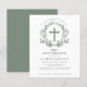 Elegantens val för en pojkes första inbjudan till kommunförbundet. En sage grönt botaniskt eukalyptus wandeand ramar a simple kor längst upp. All text kan redigeras.