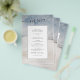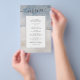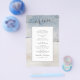 Denna Budget Watercolor Marmor Bröllopsmeny har en vattenfärg mjuk blå och beige stänk, vintermönster, silver och droppar och modern handskriven teckensnitt. Baksidan av denna inbjudan är också blå och grå-beige marmorerad textur. Personifiera den och njut av den.