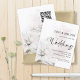 Ett ekonomiskt alternativ i BUDGET på en mindre storlek på 4,5 x 5,6 tum (110 lbs vikt), som är av samma tjocklek som ett vykort (är dock inte lämpligt för använda som vykort). OBSERVERA ATT DET FINNS EN inbjudan per lakan. Budget Watercolor White Blommigts QR-bröllop-inbjudan. En minimalistisk blommigt i mjukt vitt och grått till grund lämnat hörn och en blek tvättar i subtil frostiskt blått och rosa i bakgrunden. Bröllop är i ett modernt set skript och anpassar lätt resten av texten. För att dina gäster ska kunna svara och se mer information lägger du till din QR-kod på din svarssida på bröllop webbplats på baksidan genom att ersätta QR-koden på provet. Du kan skapa QR-koder för gratis online. Sök bara efter "QR-kodskapare" och många alternativ som komar upp till skapa gratis.