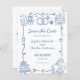Vitaktig inbjudan till Hand plockade: Doodles Fransk Stil Bröllop spara datum