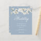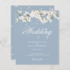 Söt blommigt, vit blommar, inbjudan till bröllopsbudget med delikat vår-blommar som ger dina bröllop-detaljer i elegant vit text på en dammig blå bakgrund. Anpassa med din speciella händelseinformation. De omvända egenskaperna har spritt vita blommar. Designad av Thisisnotme©