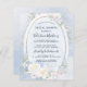 Vita orkidéer skapar elegantens blommigt och dekorerar en tunn guld oval ram. En mjuk, blå vattenfärg tvättar bakgrunden.