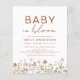 Minneshögtid för en ny mängd glädje med ett vackert Baby i den tematiska babyduschen i Bloom. Gå med oss för en eftermiddag fylld med kärlek och lycka när vi hedrar de blivande föräldrarna. Inbjudan innehåller en fantastisk terracotta - bränd bakgrund av orangen, accentuerad av en mängd levande vilda blommor.